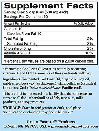Green Pasture's Fermented Cod Liver Oil is a wonderful nutritional supplement which provides multiple health benefits. Blue Ice™ Cod Liver Oil is processed using traditional tried and true methods of extracting the oil via fermentation rather than using chemical and/or mechanical processes. This process was developed over many centuries and yields an oil with all of its natural compounds intact,...