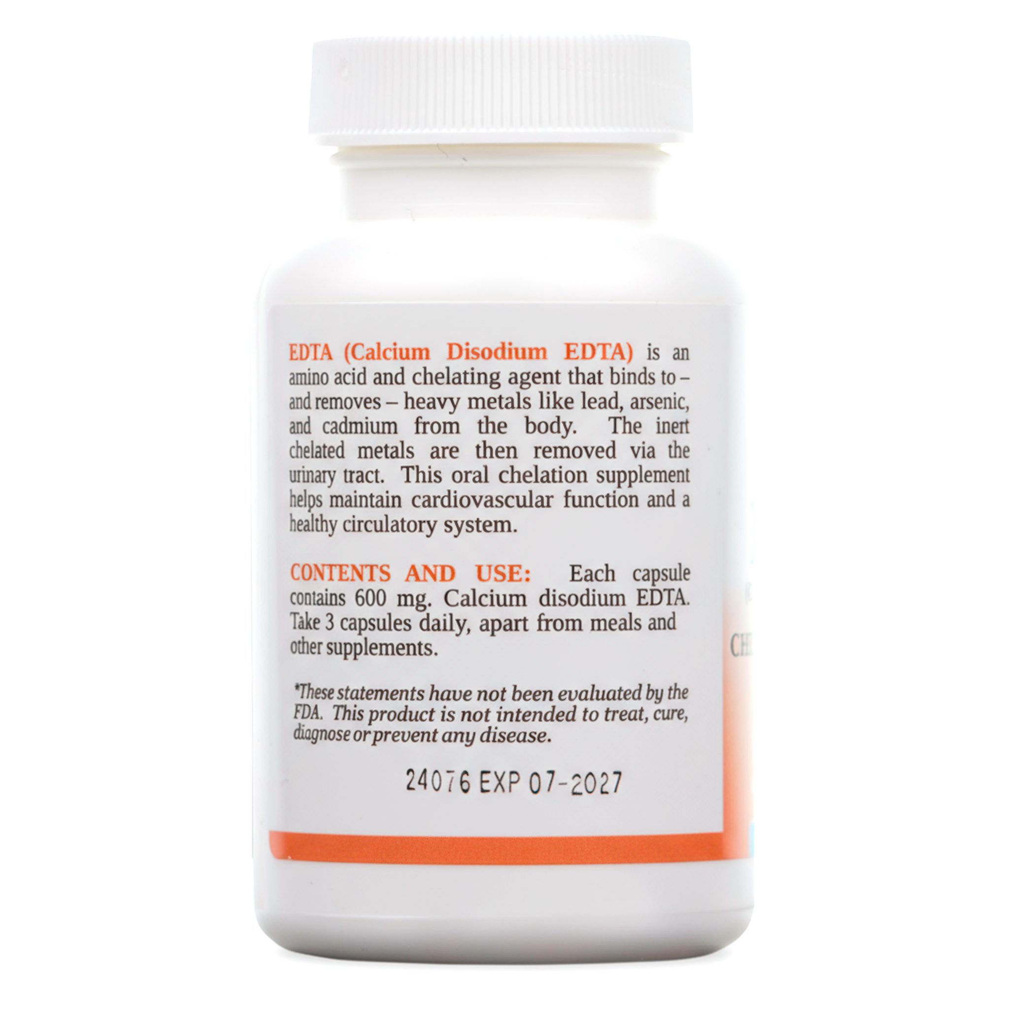 EDTA is an acronym for the chemical compound Ethylenediaminetetraacetic acid. It is most commonly produced as a salt. Two compounds of importance are disodium EDTA and calcium disodium EDTA. Both of these compounds are effective in binding up other mineral ions in most aqueous solutions, including blood. This characteristic makes it a useful compound for removing unwanted mineral elements from the blood stream. We offer this particular product because it is a high quality, reasonably priced calcium disodium EDTA. It is the recommended EDTA to be incorporated into our cleansing protocol. Several benefits of EDTA are: