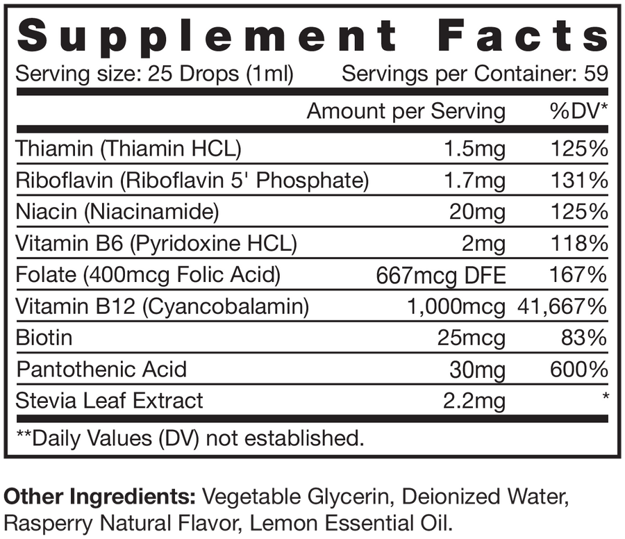 Vitality Works B Complex consists of 8 distinct vitamins known collectively as vitamin B complex. This group of vitamins work in tandem to strengthen immune function and promote a healthy nervous system. Vitamin B complex is an important co-factor with minerals to help support mood and cardiovascular health; they work together to deliver a number of health benefits to the body. B vitamins are water soluble and must be replenished in the body on a daily basis. Vitality Works B Complex provides a synergistic blend of all B vitamins in a liquid, easy to take, bio-available formula.